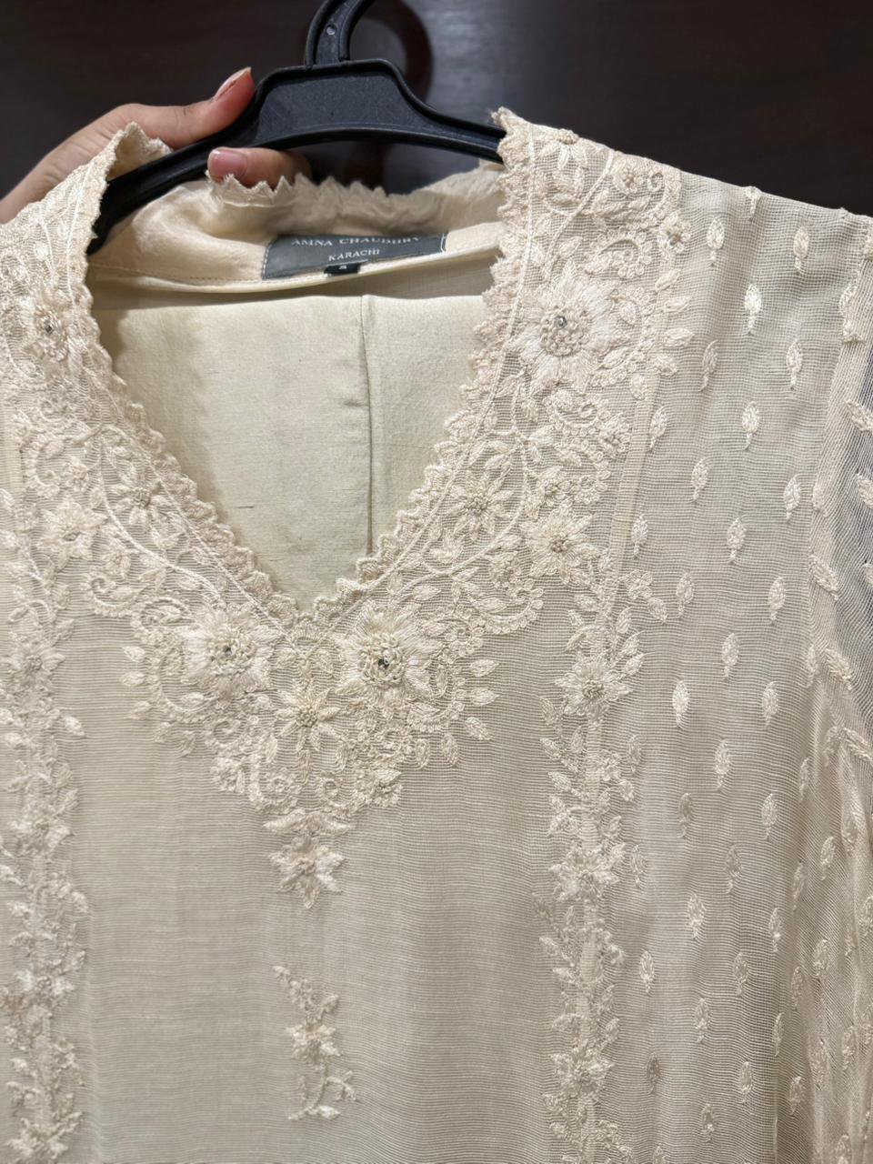 khaadi net shirt organza dupaatta rawsilk pants