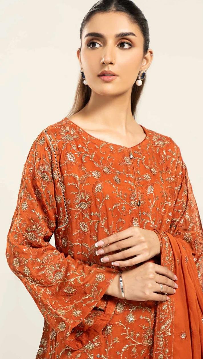 • Design Code: LF-717-S – Rust (Embroidered Chiffon – 2 Piece)